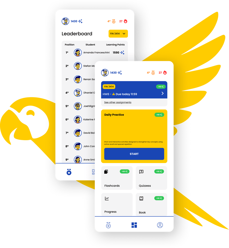 Our interactive, gamified activities motivate students to study daily, earn points, and climb leaderboards, while instructors can reward top performers.